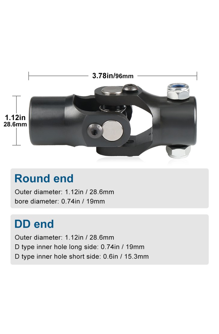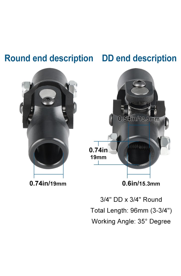 Siwerg Single Steering Shaft Universal U Joint 3/4" DD x 3/4" Round, 96mm (3-3/4") Working Angle 35°Degree